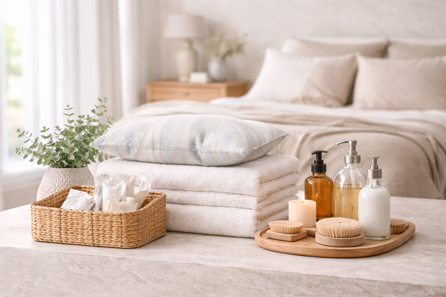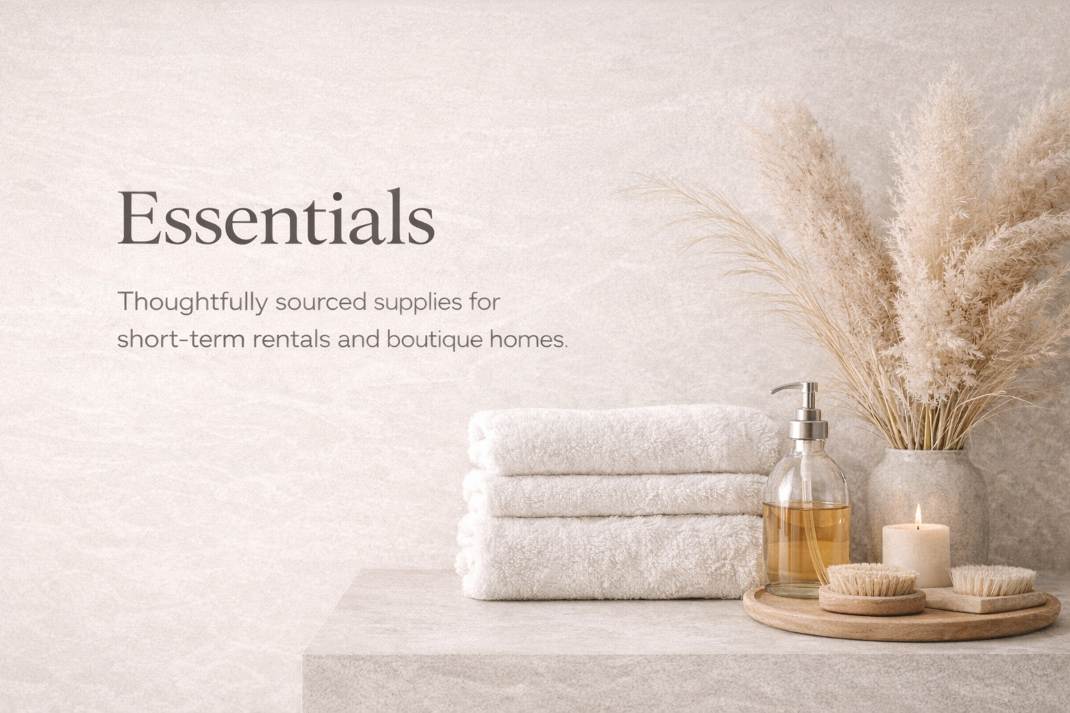 Our essentials focus on the items that see the most use and have the greatest impact on guest experience and operational efficiency. These include core linens and soft goods, guest amenities and restock items, and foundational supplies required to launch or maintain a short-term rental.